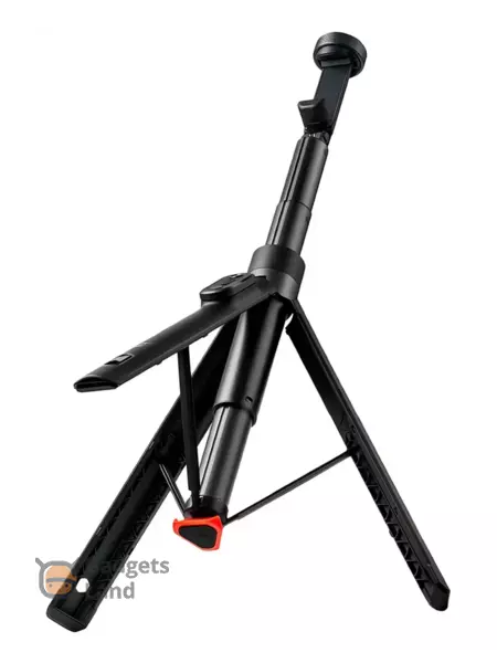 Данное устройство является инновационным гаджетом 2 в 1. Всего одно нажатие на кнопку у основания рукоятки, и ножки штатива аккуратно развернутся, превращая его в стабильную платформу для съёмки.